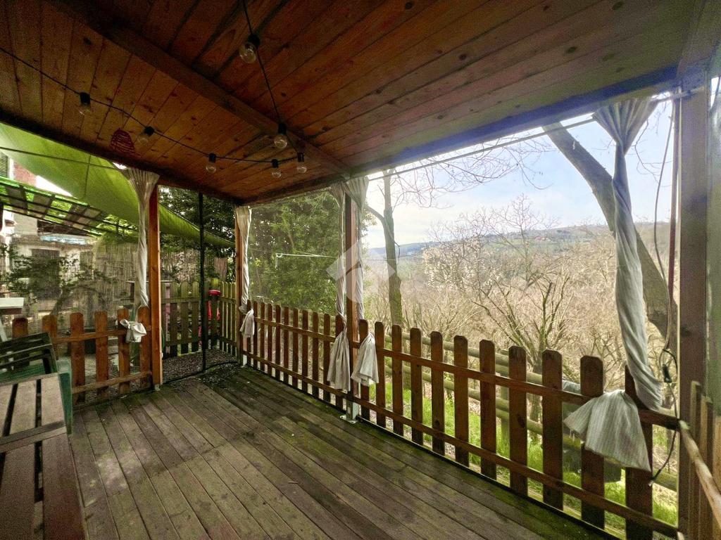 L’abitazione si sviluppa su due livelli ed è circondata su due lati da un terreno privato che offre diversi angoli suggestivi con vista aperta sulla natura e sulle colline circostanti, perfetti per creare spazi relax, area pranzo all’aperto o piccolo giardino.